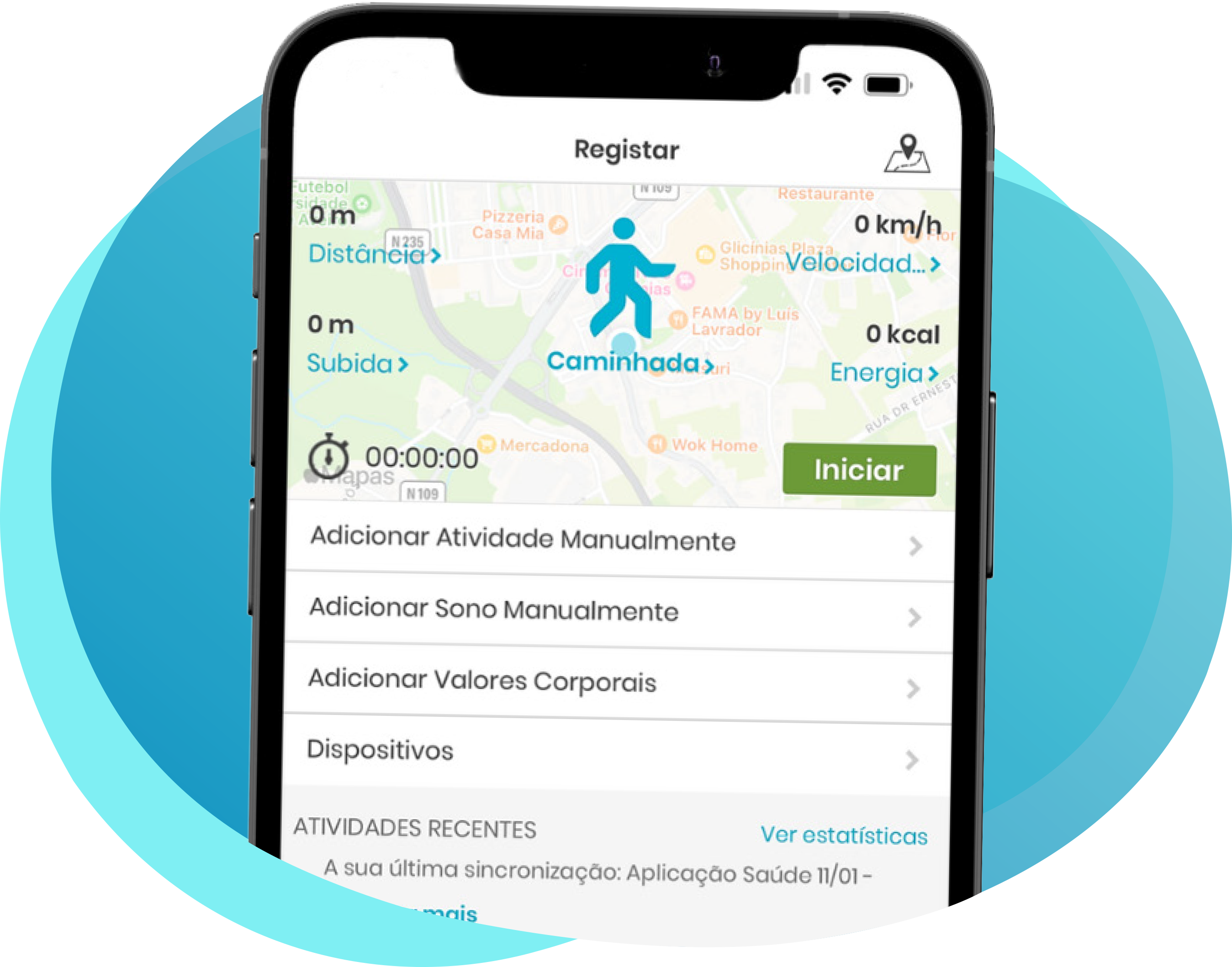 Conecte o seu smartphone ou App e registe diariamente a sua atividade.